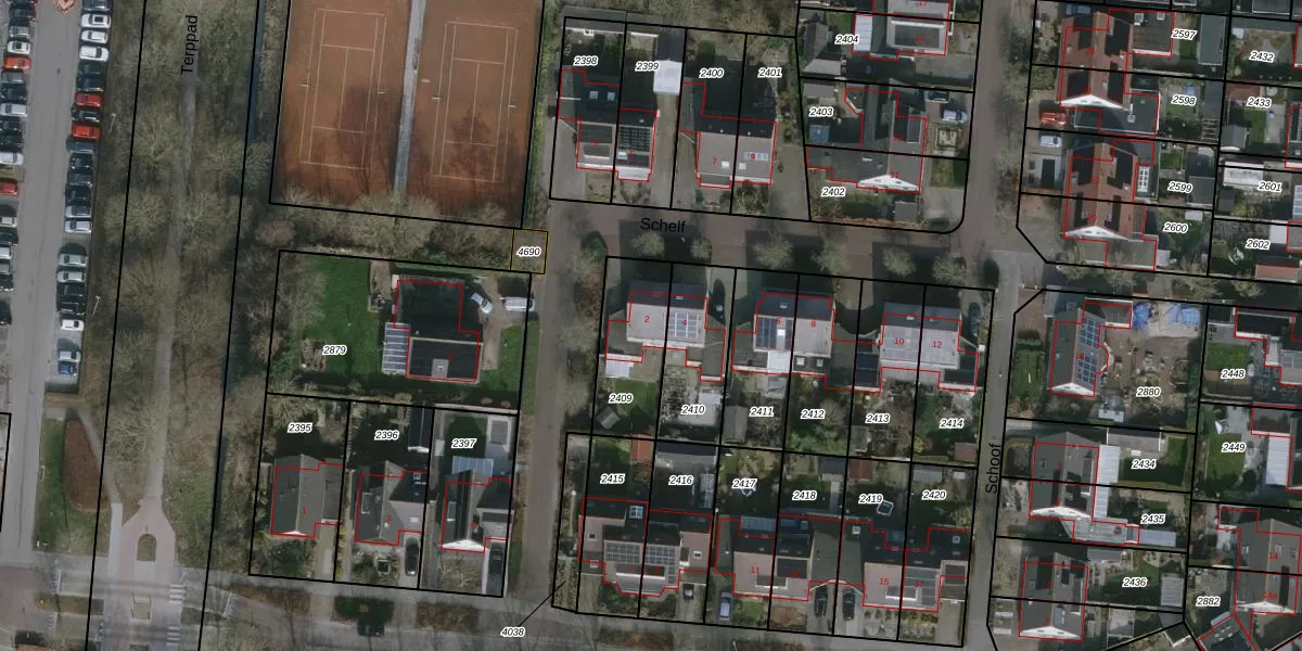 Gebruik de zoekbalk of klik op een perceel voor informatie over de adressen binnen dit perceel.