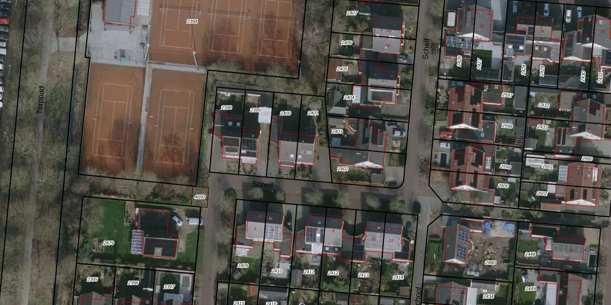 Gebruik de zoekbalk of klik op een perceel voor informatie over de adressen binnen dit perceel.