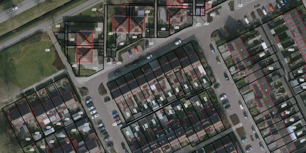Het perceel waarop Schoener 11 staat heeft een oppervlakte van 179 m². Dit is een middelgroot perceel. De perceeloppervlakte wordt geregistreerd door het Kadaster. Gedetailleerde informatie over de maten van dit perceel kunt u vinden in het rapport Kadastrale kaart met maatvoering van Schoener 11.