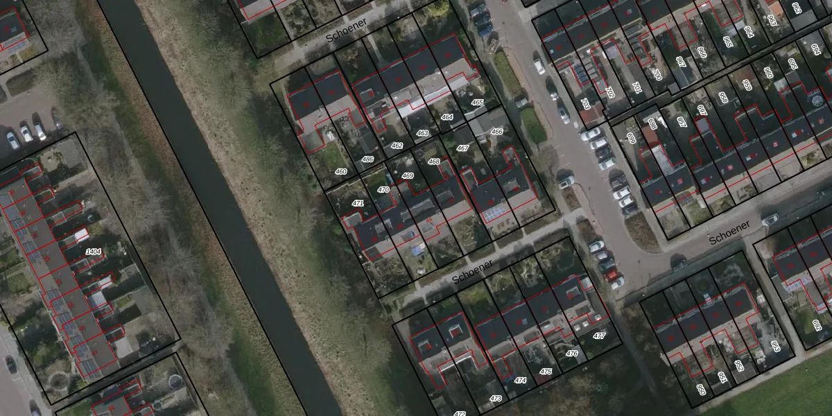 Het perceel waarop Schoener 44 staat heeft een oppervlakte van 197 m². Dit is een middelgroot perceel. De perceeloppervlakte wordt geregistreerd door het Kadaster. Gedetailleerde informatie over de maten van dit perceel kunt u vinden in het rapport Kadastrale kaart met maatvoering van Schoener 44.
