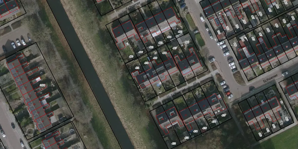 Het perceel waarop Schoener 46 staat heeft een oppervlakte van 197 m². Dit is een middelgroot perceel. De perceeloppervlakte wordt geregistreerd door het Kadaster. Gedetailleerde informatie over de maten van dit perceel kunt u vinden in het rapport Kadastrale kaart met maatvoering van Schoener 46.
