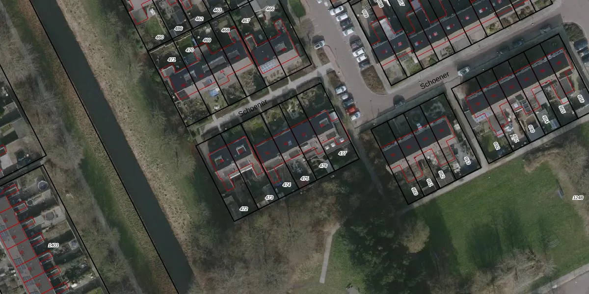 Het perceel waarop Schoener 49 staat heeft een oppervlakte van 197 m². Dit is een middelgroot perceel. De perceeloppervlakte wordt geregistreerd door het Kadaster. Gedetailleerde informatie over de maten van dit perceel kunt u vinden in het rapport Kadastrale kaart met maatvoering van Schoener 49.