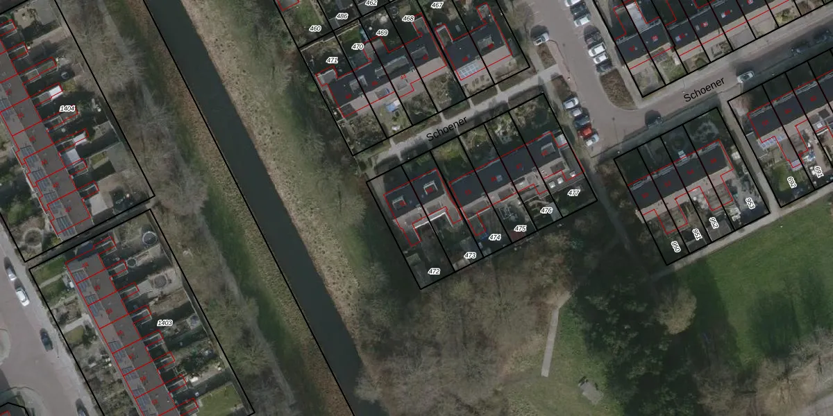 Het perceel waarop Schoener 55 staat heeft een oppervlakte van 274 m². Dit is een middelgroot perceel. De perceeloppervlakte wordt geregistreerd door het Kadaster. Gedetailleerde informatie over de maten van dit perceel kunt u vinden in het rapport Kadastrale kaart met maatvoering van Schoener 55.