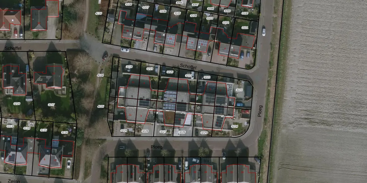 Het perceel waarop Schoffel 5 staat heeft een oppervlakte van 191 m². Dit is een middelgroot perceel. De perceeloppervlakte wordt geregistreerd door het Kadaster. Gedetailleerde informatie over de maten van dit perceel kunt u vinden in het rapport Kadastrale kaart met maatvoering van Schoffel 5.