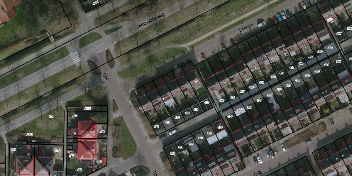 Gebruik de zoekbalk of klik op een perceel voor informatie over de adressen binnen dit perceel.