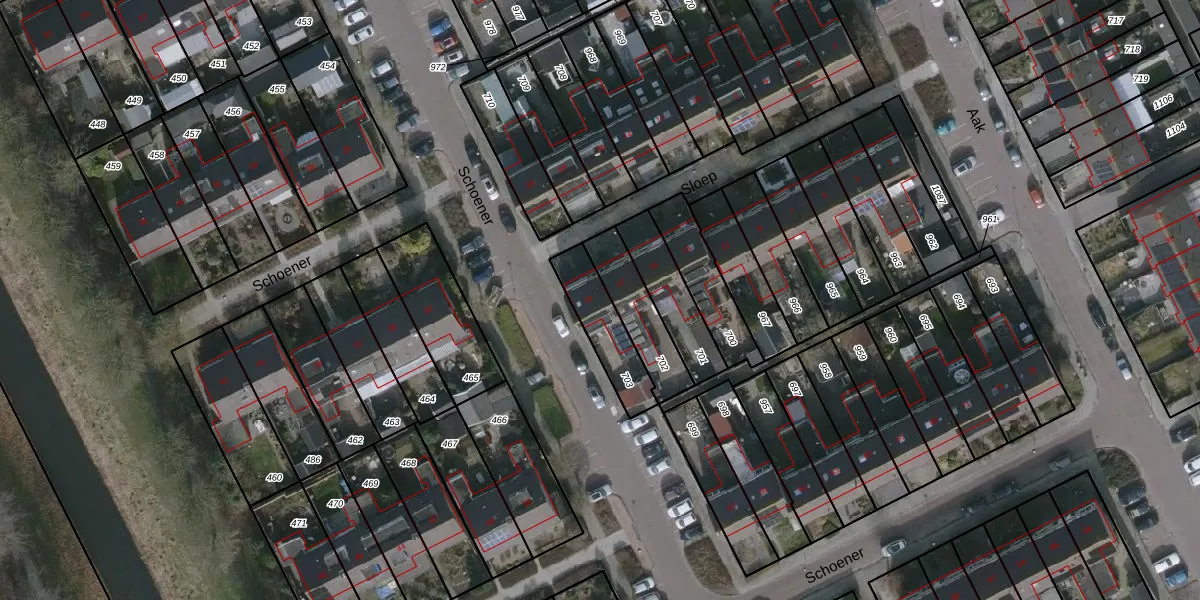 Gebruik de zoekbalk of klik op een perceel voor informatie over de adressen binnen dit perceel.