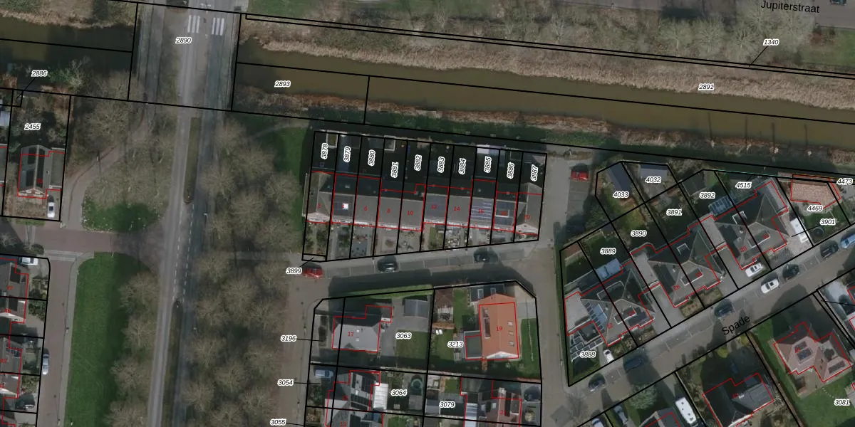 Het perceel waarop Spade 12 staat heeft een oppervlakte van 135 m². Dit is een middelgroot perceel. De perceeloppervlakte wordt geregistreerd door het Kadaster. Gedetailleerde informatie over de maten van dit perceel kunt u vinden in het rapport Kadastrale kaart met maatvoering van Spade 12.