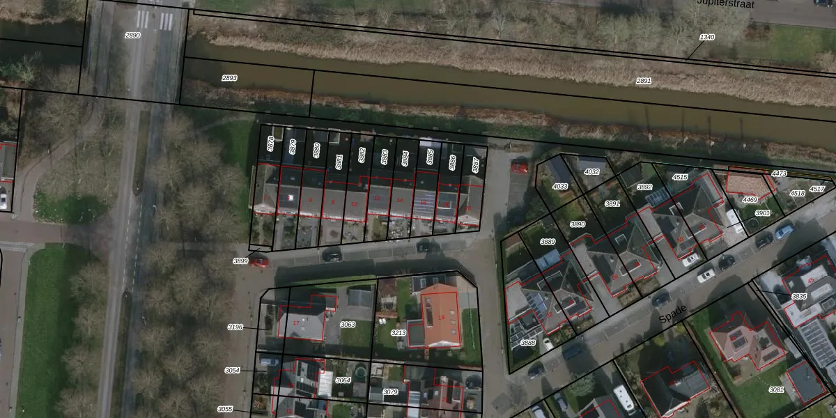 Het perceel waarop Spade 16 staat heeft een oppervlakte van 125 m². Dit is een middelgroot perceel. De perceeloppervlakte wordt geregistreerd door het Kadaster. Gedetailleerde informatie over de maten van dit perceel kunt u vinden in het rapport Kadastrale kaart met maatvoering van Spade 16.