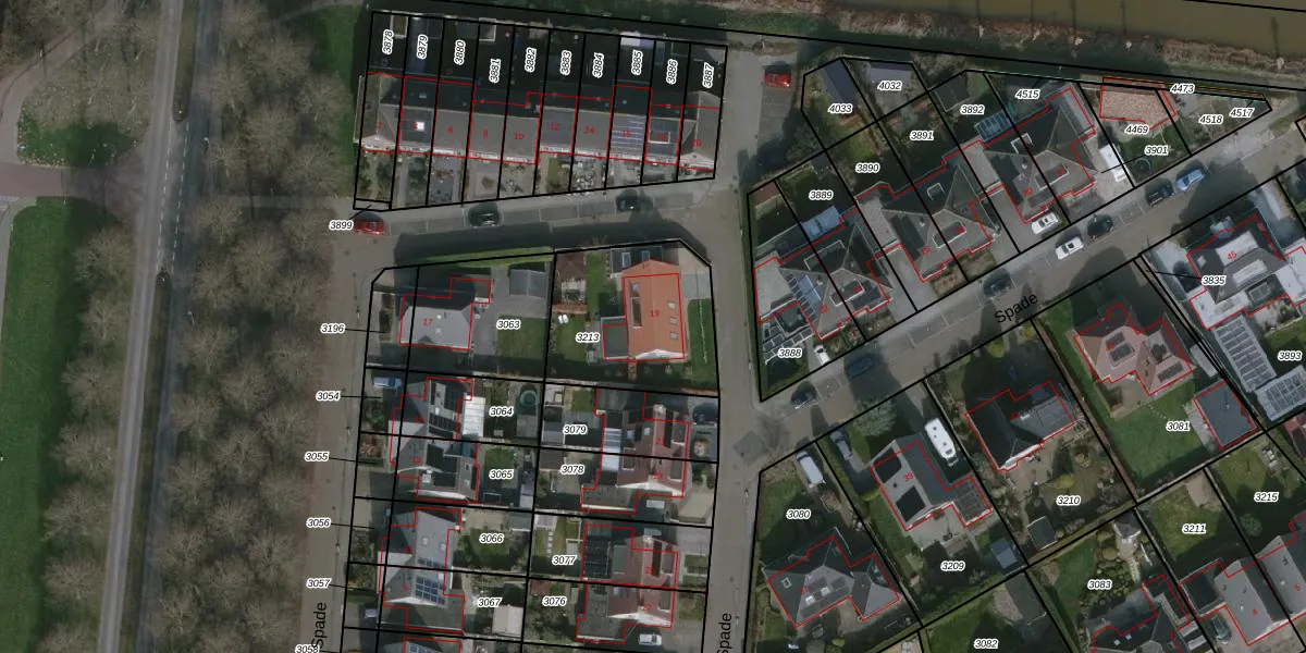 Het perceel waarop Spade 19 staat heeft een oppervlakte van 545 m². Dit is een groot perceel. De perceeloppervlakte wordt geregistreerd door het Kadaster. Gedetailleerde informatie over de maten van dit perceel kunt u vinden in het rapport Kadastrale kaart met maatvoering van Spade 19.