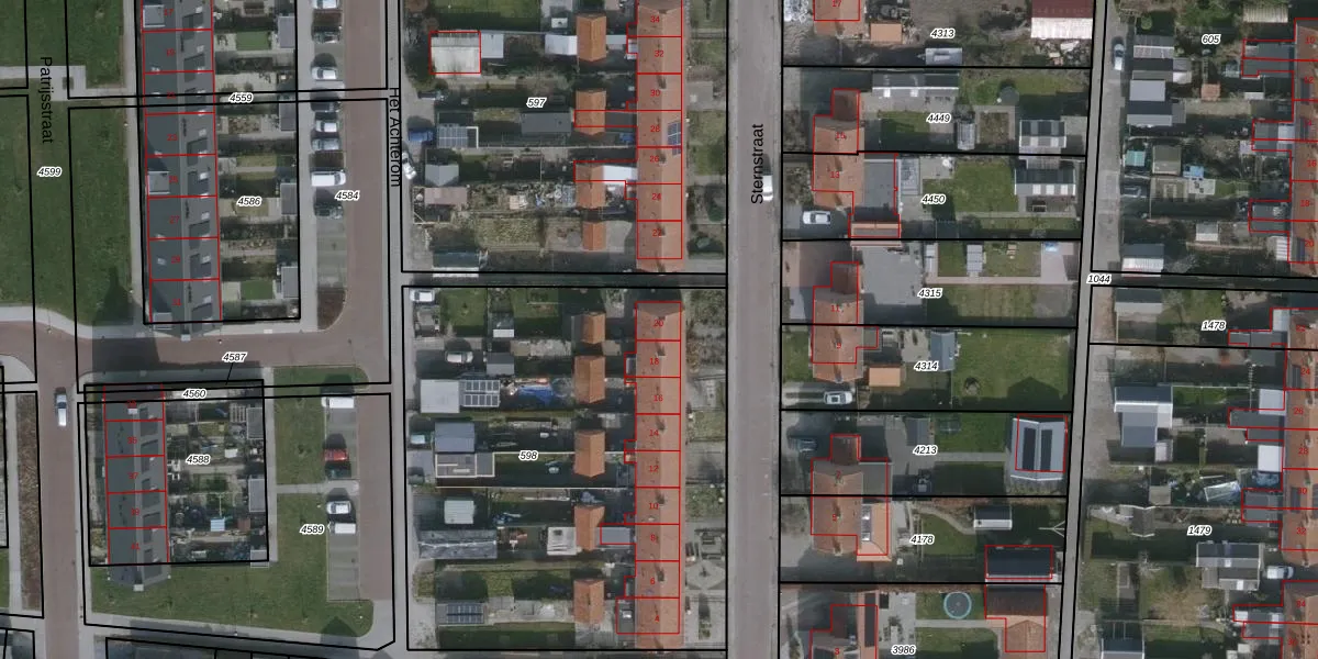 Het perceel waarop Sternstraat 20 staat heeft een oppervlakte van 2688 m². Dit is een zeer groot perceel. De perceeloppervlakte wordt geregistreerd door het Kadaster. Gedetailleerde informatie over de maten van dit perceel kunt u vinden in het rapport Kadastrale kaart met maatvoering van Sternstraat 20.