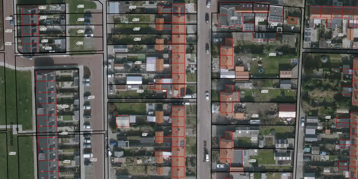 Gebruik de zoekbalk of klik op een perceel voor informatie over de adressen binnen dit perceel.