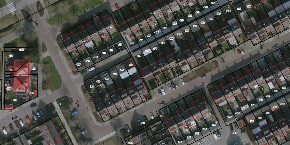 Gebruik de zoekbalk of klik op een perceel voor informatie over de adressen binnen dit perceel.