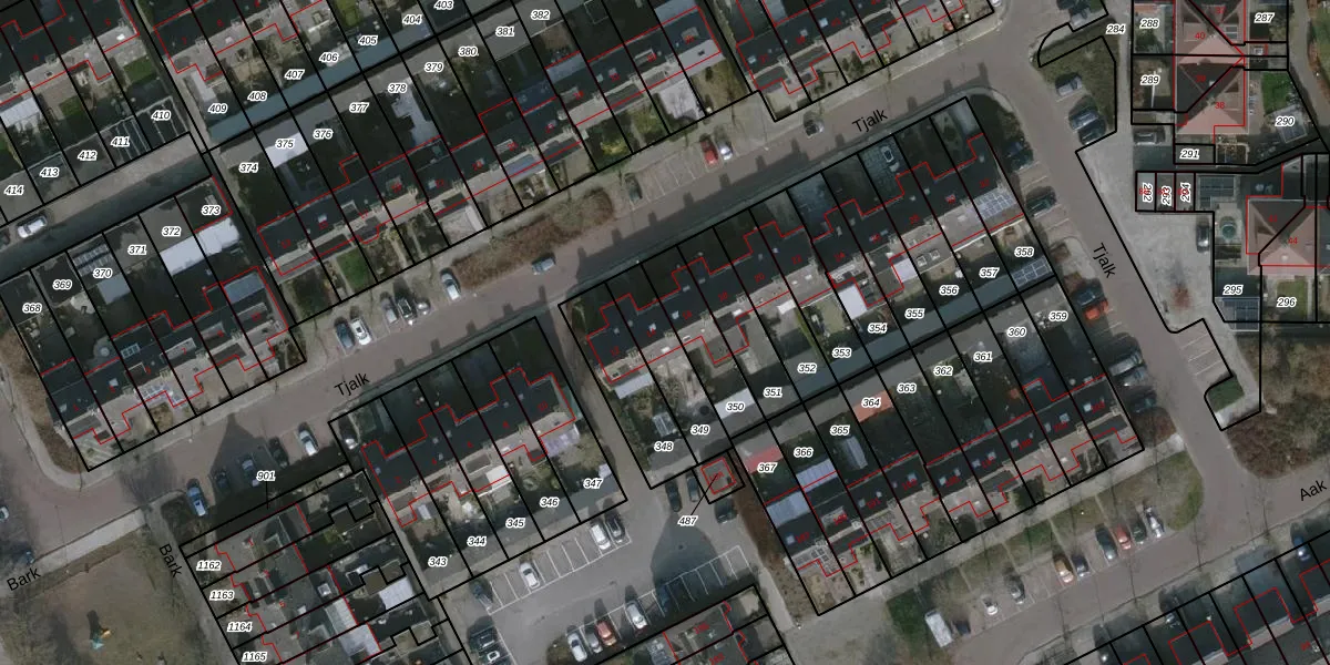Gebruik de zoekbalk of klik op een perceel voor informatie over de adressen binnen dit perceel.