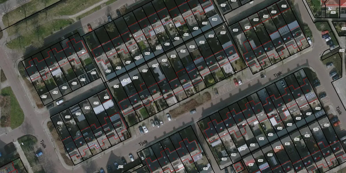 Gebruik de zoekbalk of klik op een perceel voor informatie over de adressen binnen dit perceel.