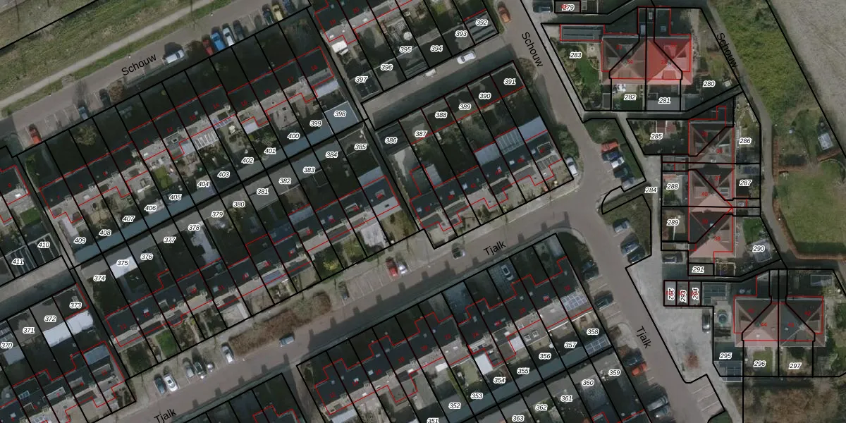Het perceel waarop Tjalk 37 staat heeft een oppervlakte van 224 m². Dit is een middelgroot perceel. De perceeloppervlakte wordt geregistreerd door het Kadaster. Gedetailleerde informatie over de maten van dit perceel kunt u vinden in het rapport Kadastrale kaart met maatvoering van Tjalk 37.