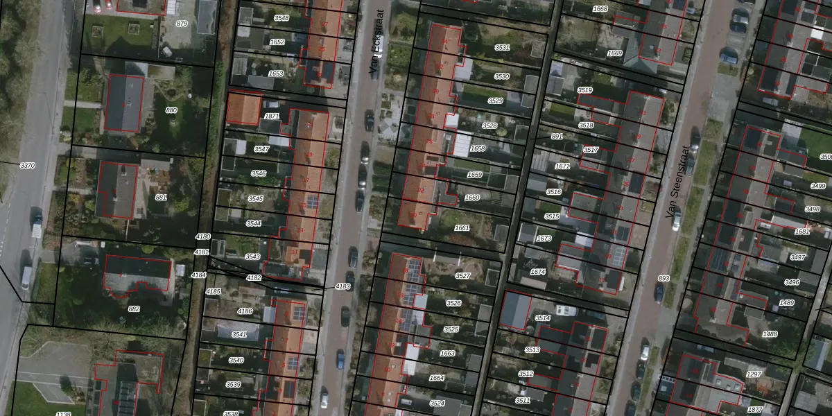 Gebruik de zoekbalk of klik op een perceel voor informatie over de adressen binnen dit perceel.