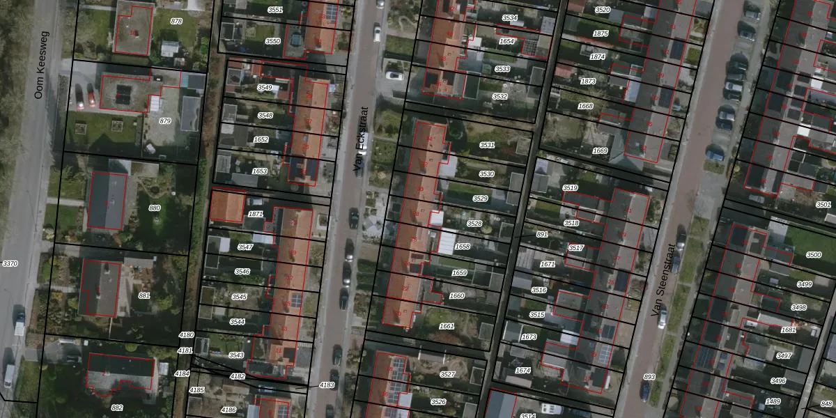 Gebruik de zoekbalk of klik op een perceel voor informatie over de adressen binnen dit perceel.