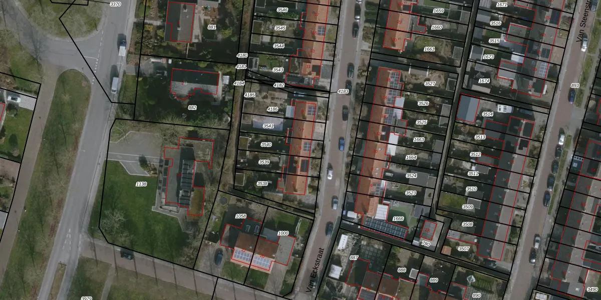Het perceel waarop Van Eckstraat 5 staat heeft een oppervlakte van 174 m². Dit is een middelgroot perceel. De perceeloppervlakte wordt geregistreerd door het Kadaster. Gedetailleerde informatie over de maten van dit perceel kunt u vinden in het rapport Kadastrale kaart met maatvoering van Van Eckstraat 5.