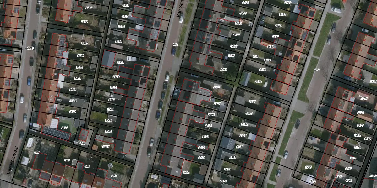 Gebruik de zoekbalk of klik op een perceel voor informatie over de adressen binnen dit perceel.
