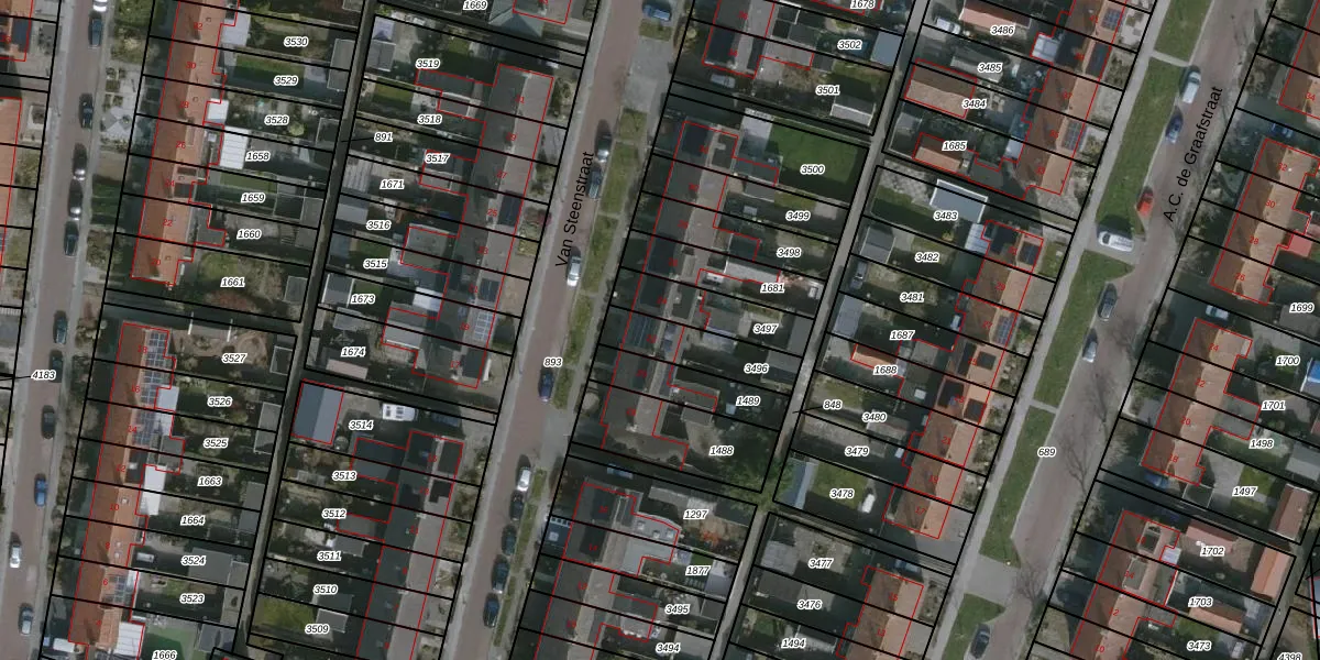 Het perceel waarop Van Steenstraat 22 staat heeft een oppervlakte van 179 m². Dit is een middelgroot perceel. De perceeloppervlakte wordt geregistreerd door het Kadaster. Gedetailleerde informatie over de maten van dit perceel kunt u vinden in het rapport Kadastrale kaart met maatvoering van Van Steenstraat 22.