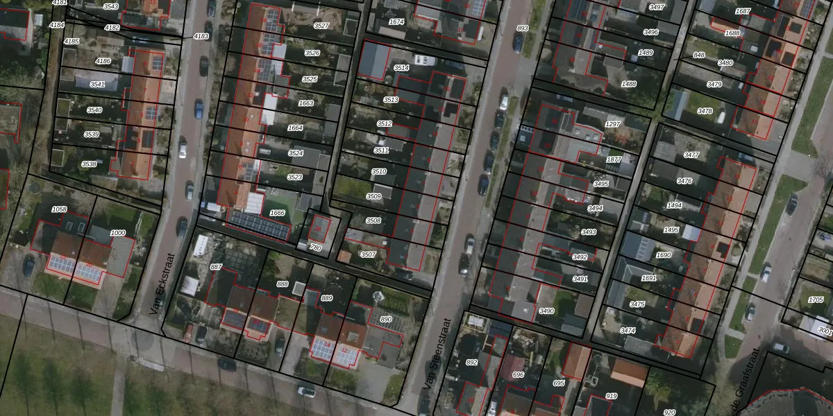Gebruik de zoekbalk of klik op een perceel voor informatie over de adressen binnen dit perceel.