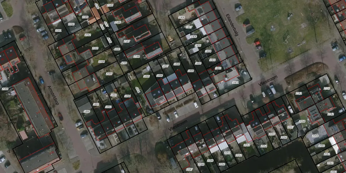 Gebruik de zoekbalk of klik op een perceel voor informatie over de adressen binnen dit perceel.