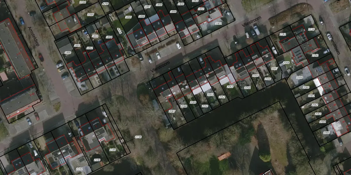 Gebruik de zoekbalk of klik op een perceel voor informatie over de adressen binnen dit perceel.