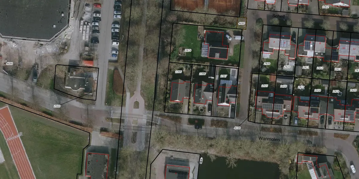 Het perceel waarop Wanmolen 1 staat heeft een oppervlakte van 364 m². Dit is een groot perceel. De perceeloppervlakte wordt geregistreerd door het Kadaster. Gedetailleerde informatie over de maten van dit perceel kunt u vinden in het rapport Kadastrale kaart met maatvoering van Wanmolen 1.