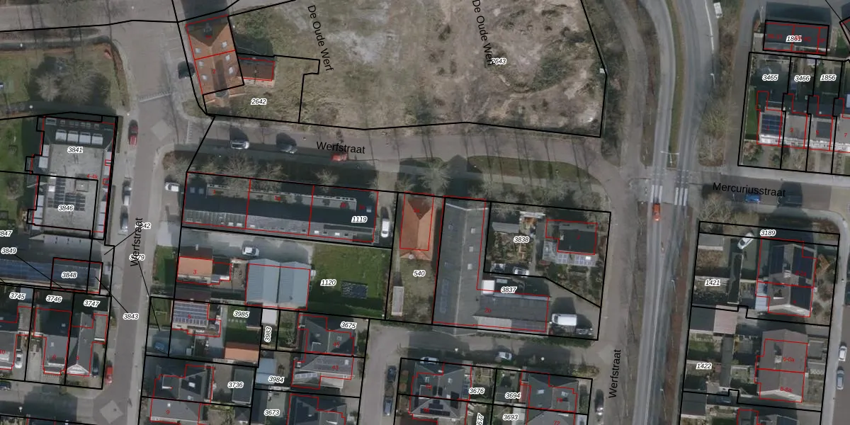 Het perceel waarop Werfstraat 2-b staat heeft een oppervlakte van 330 m². Dit is een groot perceel. De perceeloppervlakte wordt geregistreerd door het Kadaster. Gedetailleerde informatie over de maten van dit perceel kunt u vinden in het rapport Kadastrale kaart met maatvoering van Werfstraat 2-b.
