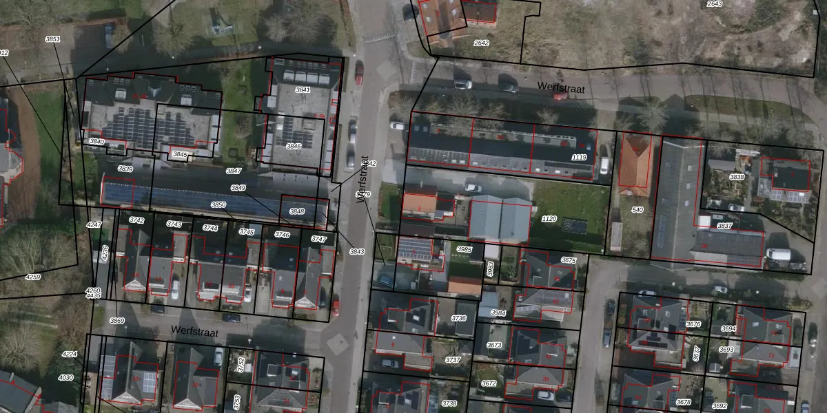Het perceel waarop Werfstraat 3 staat heeft een oppervlakte van 850 m². Dit is een groot perceel. De perceeloppervlakte wordt geregistreerd door het Kadaster. Gedetailleerde informatie over de maten van dit perceel kunt u vinden in het rapport Kadastrale kaart met maatvoering van Werfstraat 3.