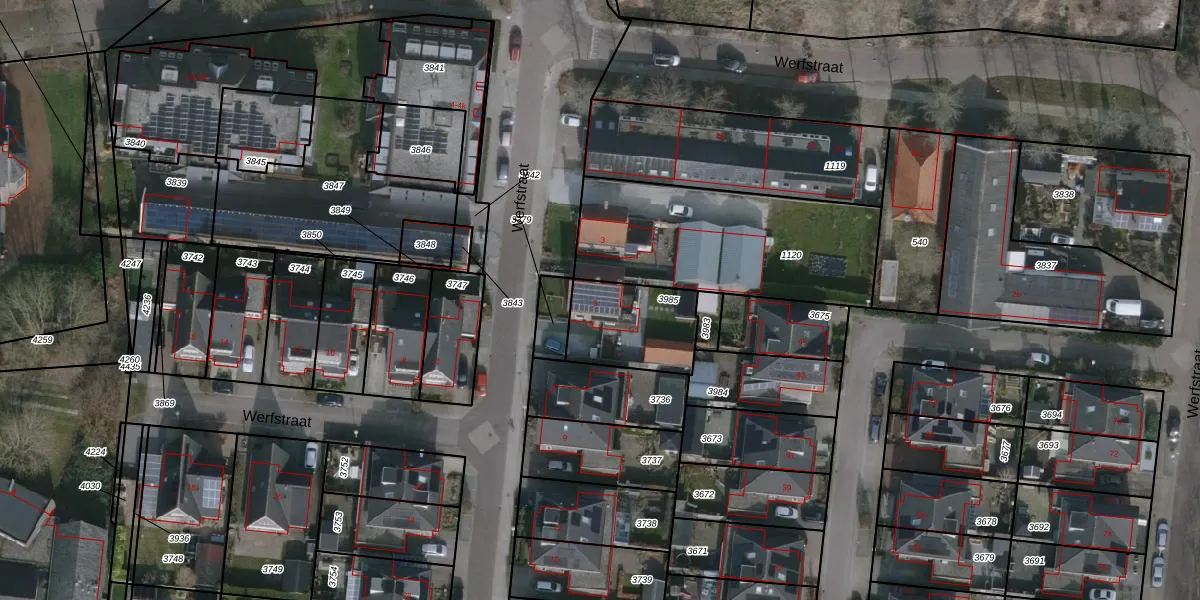 Het perceel waarop Werfstraat 5 staat heeft een oppervlakte van 295 m². Dit is een middelgroot perceel. De perceeloppervlakte wordt geregistreerd door het Kadaster. Gedetailleerde informatie over de maten van dit perceel kunt u vinden in het rapport Kadastrale kaart met maatvoering van Werfstraat 5.