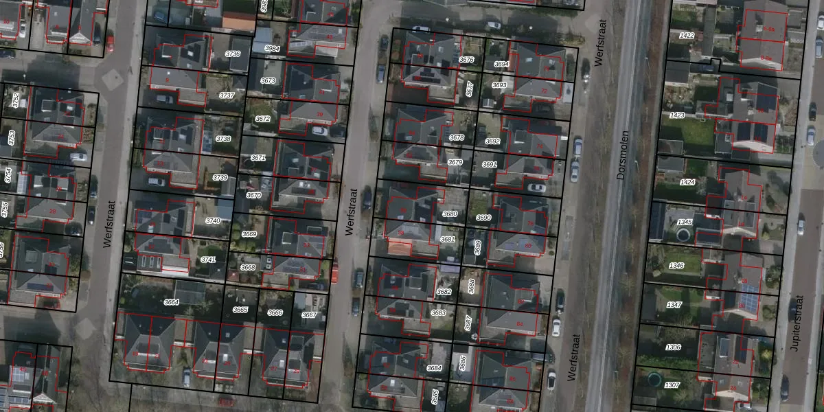 Het perceel waarop Werfstraat 60 staat heeft een oppervlakte van 213 m². Dit is een middelgroot perceel. De perceeloppervlakte wordt geregistreerd door het Kadaster. Gedetailleerde informatie over de maten van dit perceel kunt u vinden in het rapport Kadastrale kaart met maatvoering van Werfstraat 60.