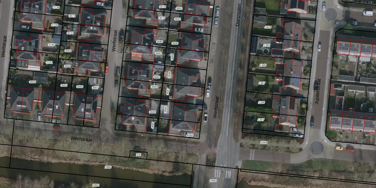 Gebruik de zoekbalk of klik op een perceel voor informatie over de adressen binnen dit perceel.