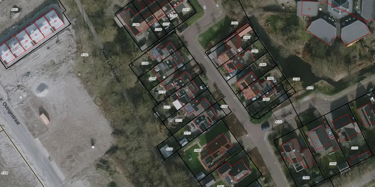 Het perceel waarop Westwal 12 staat heeft een oppervlakte van 261 m². Dit is een middelgroot perceel. De perceeloppervlakte wordt geregistreerd door het Kadaster. Gedetailleerde informatie over de maten van dit perceel kunt u vinden in het rapport Kadastrale kaart met maatvoering van Westwal 12.