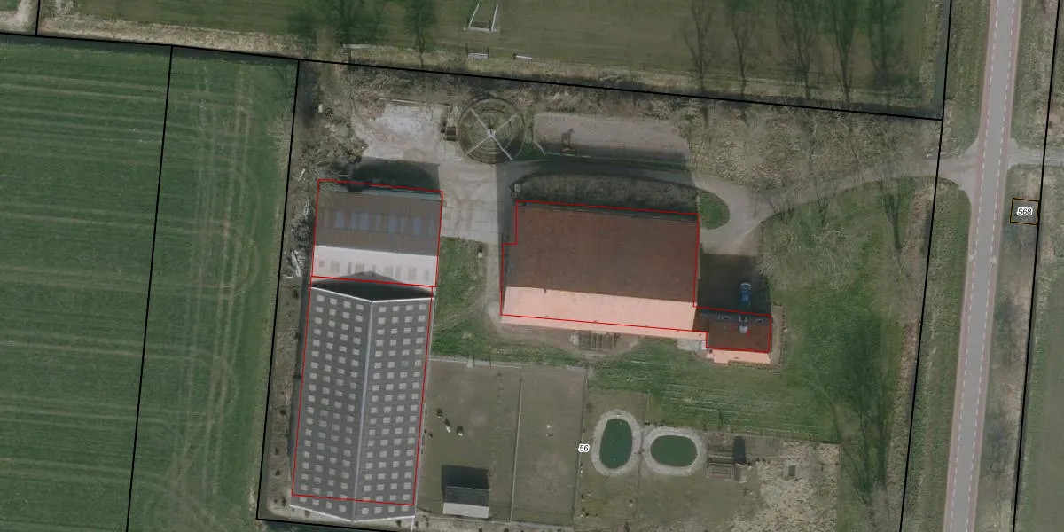 Het adres ligt op het perceel WRG03-M-56, dat zich in de kadastrale gemeente Wieringermeer bevindt. De gemiddelde perceelgrootte in Wieringermeer is 3,1 ha. Dit perceel is kleiner: de perceeloppervlakte bedraagt 1,0 ha. Het kleinste perceel in de kadastrale gemeente is 0 m² groot. De grootste perceeloppervlakte is 57,62 km². Er zijn geen andere adressen aanwezig op het perceel. De laatste wijziging in het de Basisregistratie Kadaster (BRK) was op 05-06-2003.