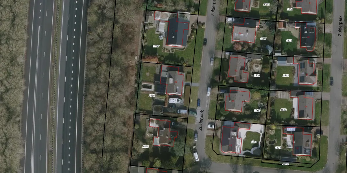 Gebruik de zoekbalk of klik op een perceel voor informatie over de adressen binnen dit perceel.