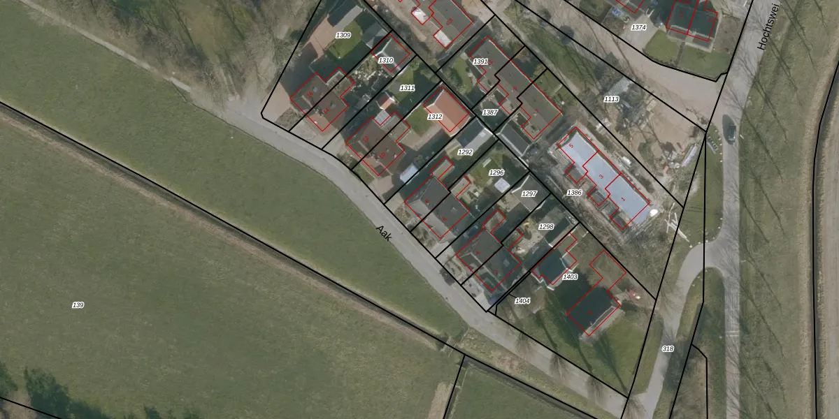 Het perceel waarop Aak 8 staat heeft een oppervlakte van 257 m². Dit is een middelgroot perceel. De perceeloppervlakte wordt geregistreerd door het Kadaster. Gedetailleerde informatie over de maten van dit perceel kunt u vinden in het rapport Kadastrale kaart met maatvoering van Aak 8.