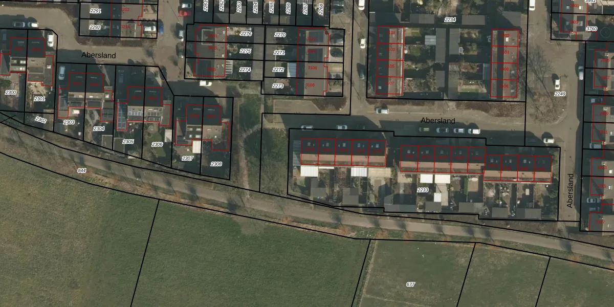 Abersland 3110 is gelegen op kadastraal perceel WCN00F2233. Deze kadastrale aanduiding is uniek en wordt gebruikt door het Kadaster om eigendomsrechten en andere zakelijke rechten vast te leggen. Het perceel maakt onderdeel uit van de kadastrale gemeente Wijchen.
