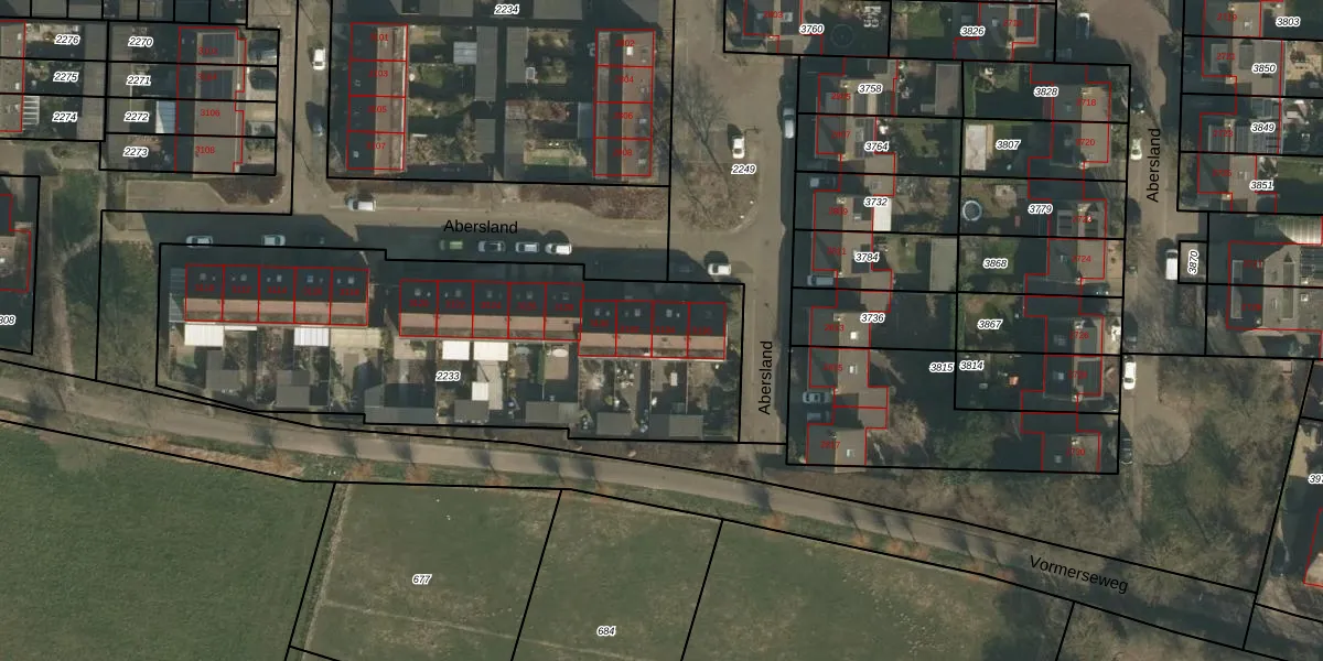 Abersland 3134 is gelegen op kadastraal perceel WCN00F2233. Deze kadastrale aanduiding is uniek en wordt gebruikt door het Kadaster om eigendomsrechten en andere zakelijke rechten vast te leggen. Het perceel maakt onderdeel uit van de kadastrale gemeente Wijchen.