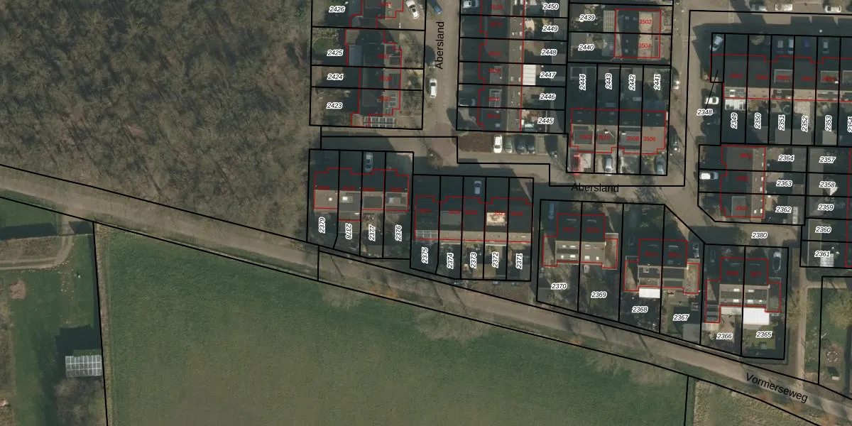 Abersland 3527 is gelegen op kadastraal perceel WCN00F2375. Deze kadastrale aanduiding is uniek en wordt gebruikt door het Kadaster om eigendomsrechten en andere zakelijke rechten vast te leggen. Het perceel maakt onderdeel uit van de kadastrale gemeente Wijchen.