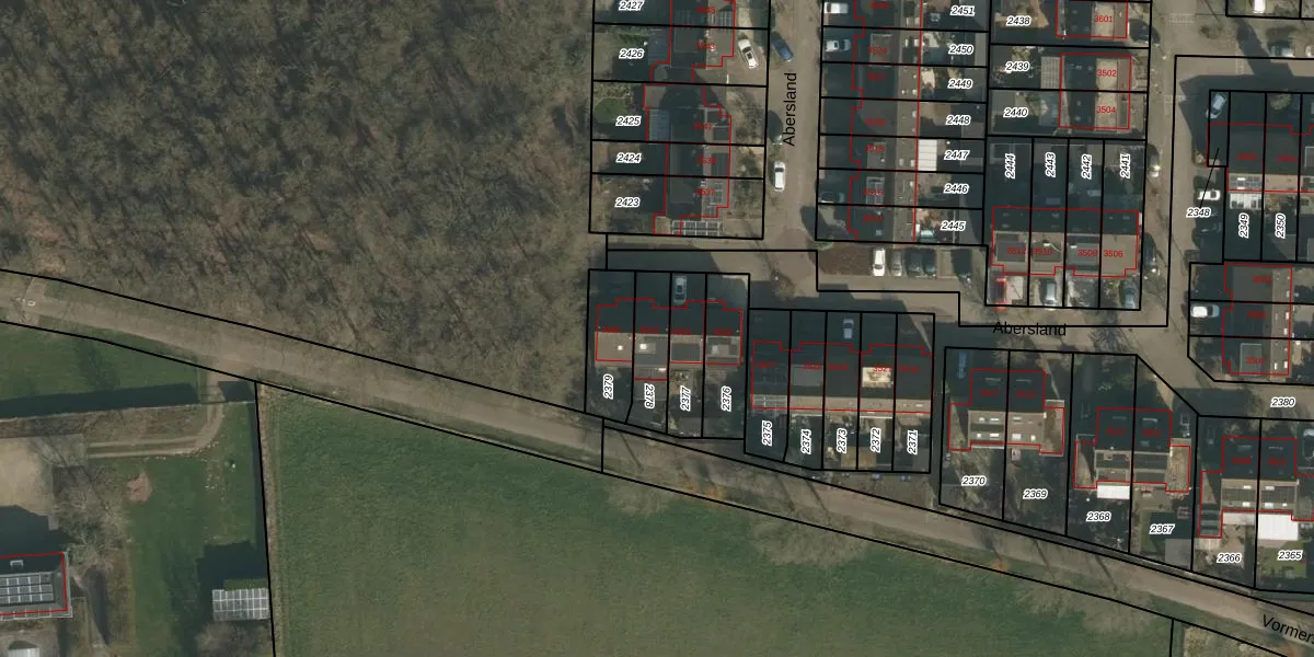 Abersland 3533 is gelegen op kadastraal perceel WCN00F2378. Deze kadastrale aanduiding is uniek en wordt gebruikt door het Kadaster om eigendomsrechten en andere zakelijke rechten vast te leggen. Het perceel maakt onderdeel uit van de kadastrale gemeente Wijchen.