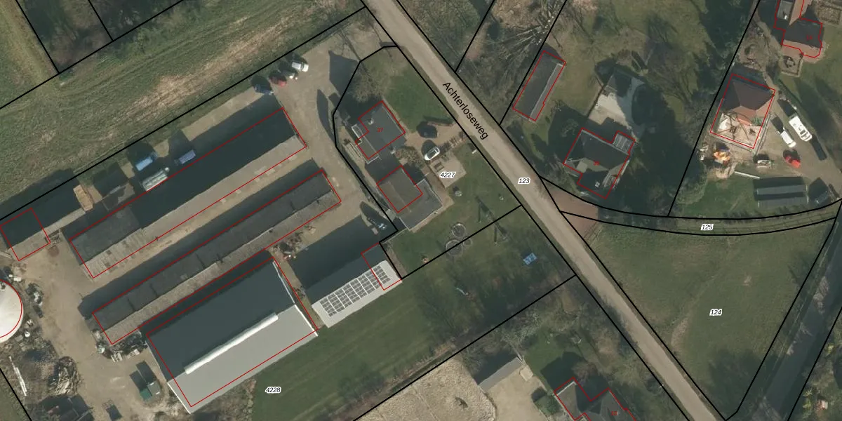 Achterloseweg 37-A is gelegen op kadastraal perceel WCN00L4227. Deze kadastrale aanduiding is uniek en wordt gebruikt door het Kadaster om eigendomsrechten en andere zakelijke rechten vast te leggen. Het perceel maakt onderdeel uit van de kadastrale gemeente Wijchen.