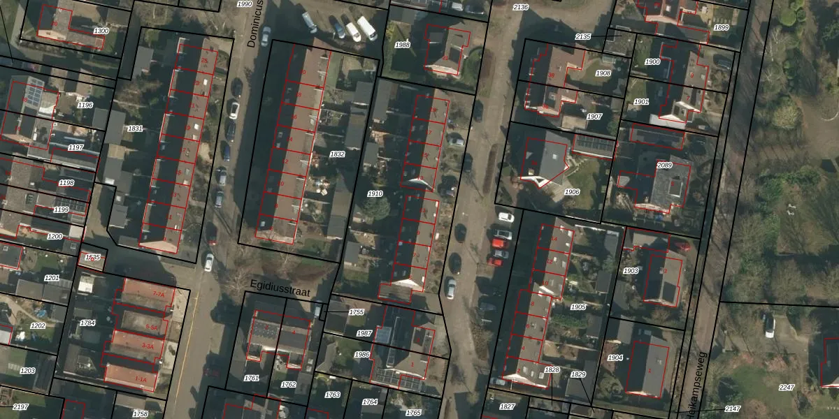 Het adres ligt op het perceel WCN00-D-1910, dat zich in de kadastrale gemeente Wijchen bevindt. Het perceel is kleiner dan gemiddeld in Wijchen. Het perceel is 1300 m² groot, terwijl het gemiddelde ligt op 1827,1 m². Het grootste perceel in de kadastrale gemeente is 66,4 ha. Het kleinste perceel heeft een oppervlakte van 0 m². Op het perceel liggen in totaal 8 adressen. De huidige grenzen van het perceel zijn digitaal in de Basisregistratie Kadaster (BRK) geregistreerd op 05-11-2009.