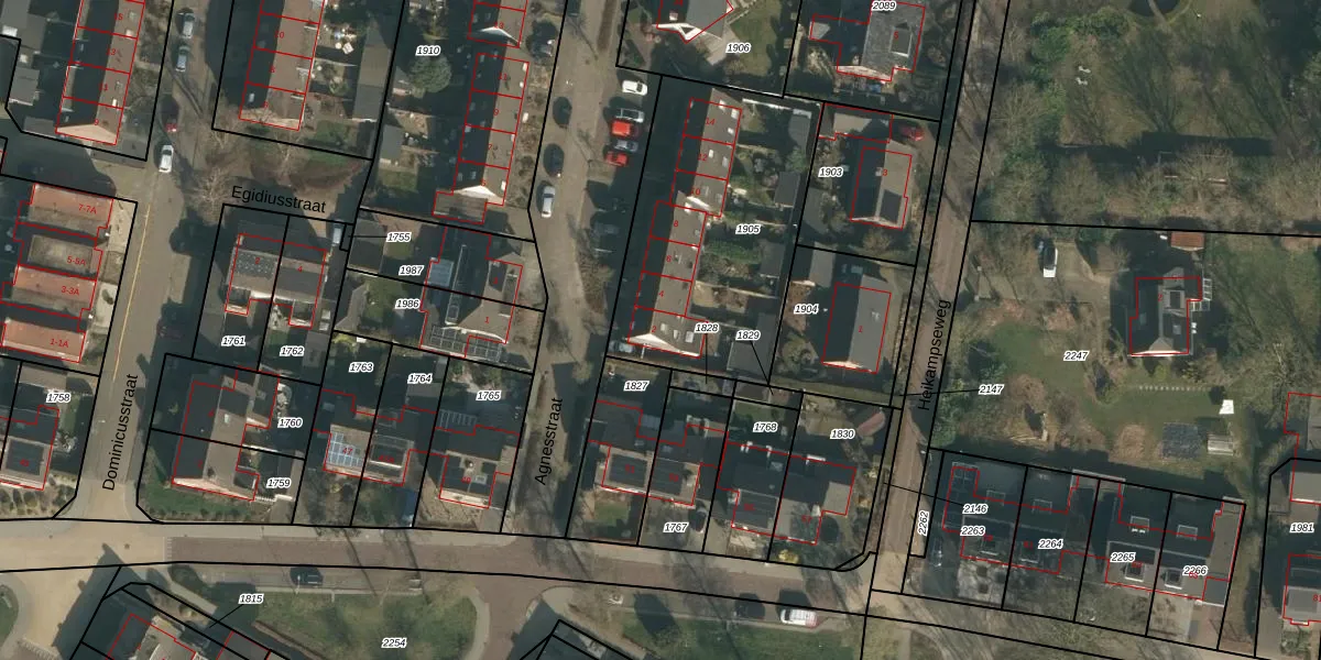 Het perceel waarop Agnesstraat 2 staat heeft een oppervlakte van 1076 m². Dit is een zeer groot perceel. De perceeloppervlakte wordt geregistreerd door het Kadaster. Gedetailleerde informatie over de maten van dit perceel kunt u vinden in het rapport Kadastrale kaart met maatvoering van Agnesstraat 2.