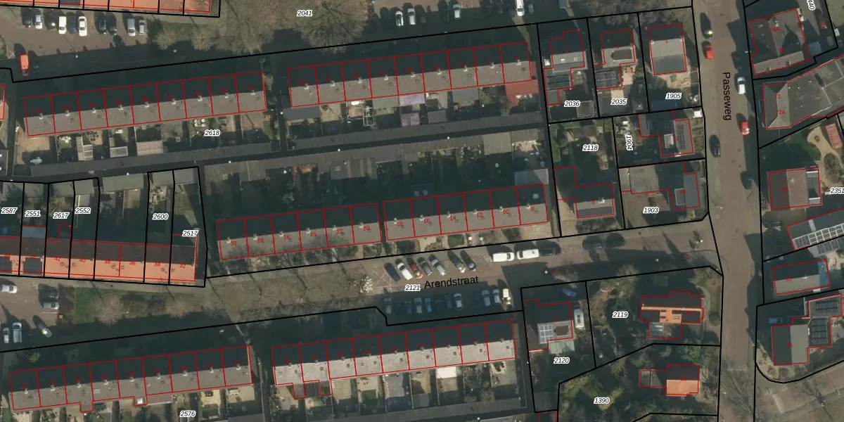 Arendstraat 16 is gelegen op kadastraal perceel WCN00G2618. Deze kadastrale aanduiding is uniek en wordt gebruikt door het Kadaster om eigendomsrechten en andere zakelijke rechten vast te leggen. Het perceel maakt onderdeel uit van de kadastrale gemeente Wijchen.