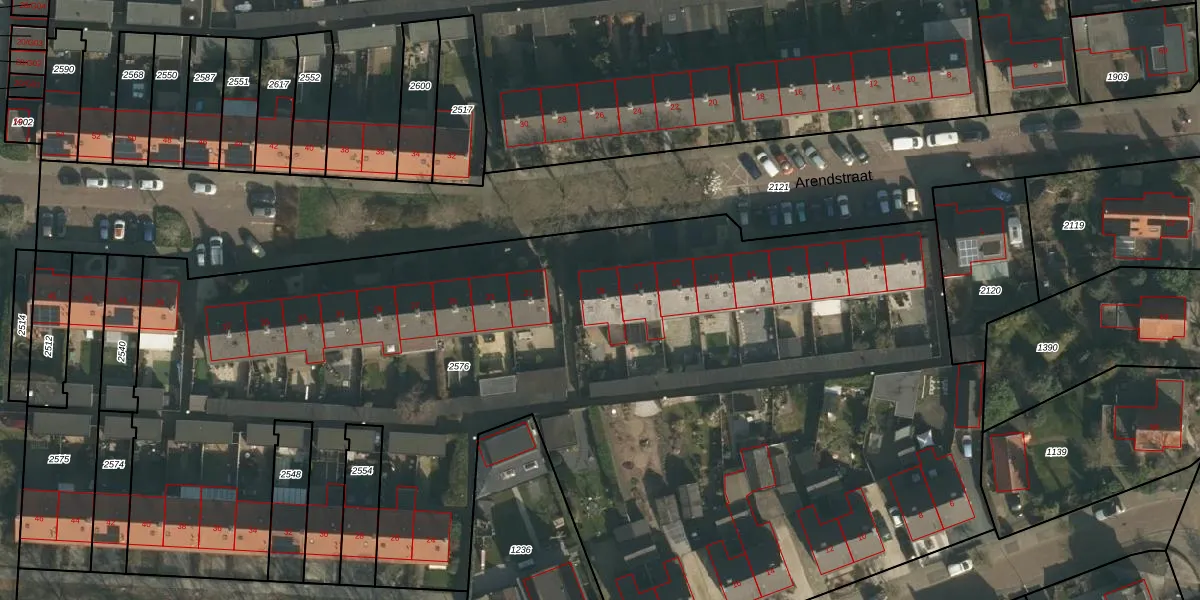 Het perceel waarop Arendstraat 19 staat heeft een oppervlakte van 7392 m². Dit is een zeer groot perceel. De perceeloppervlakte wordt geregistreerd door het Kadaster. Gedetailleerde informatie over de maten van dit perceel kunt u vinden in het rapport Kadastrale kaart met maatvoering van Arendstraat 19.