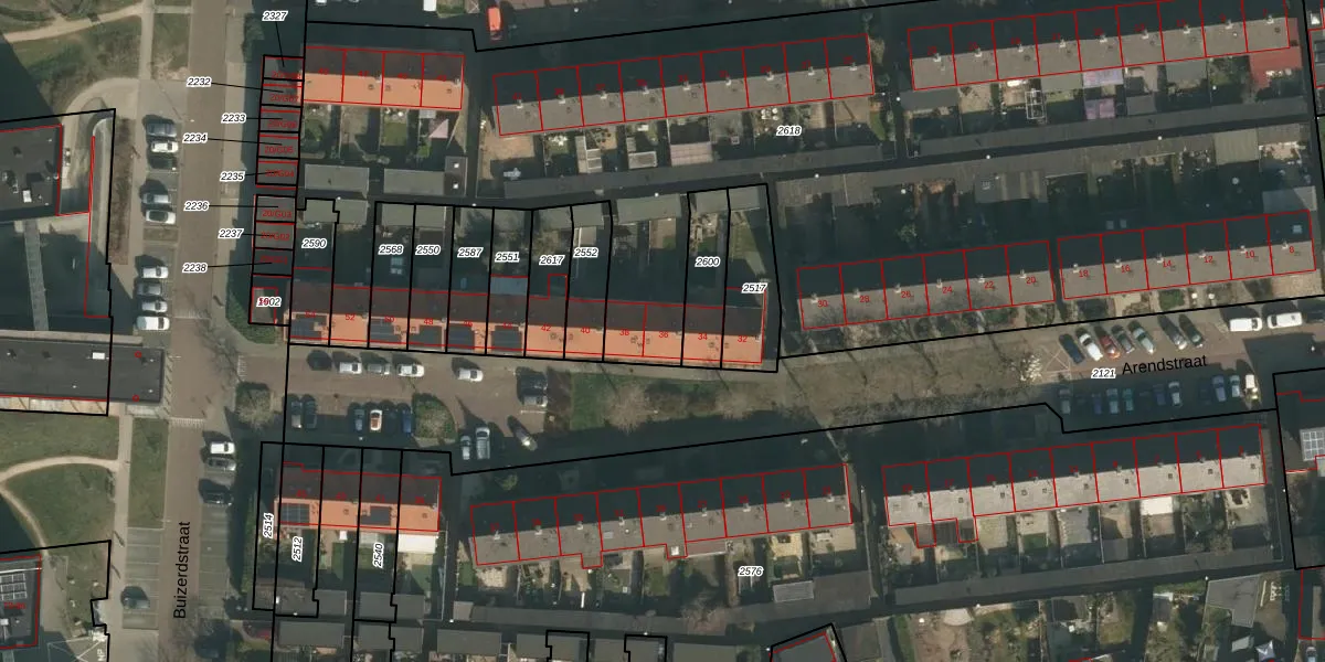 Het perceel waarop Arendstraat 36 staat heeft een oppervlakte van 6470 m². Dit is een zeer groot perceel. De perceeloppervlakte wordt geregistreerd door het Kadaster. Gedetailleerde informatie over de maten van dit perceel kunt u vinden in het rapport Kadastrale kaart met maatvoering van Arendstraat 36.