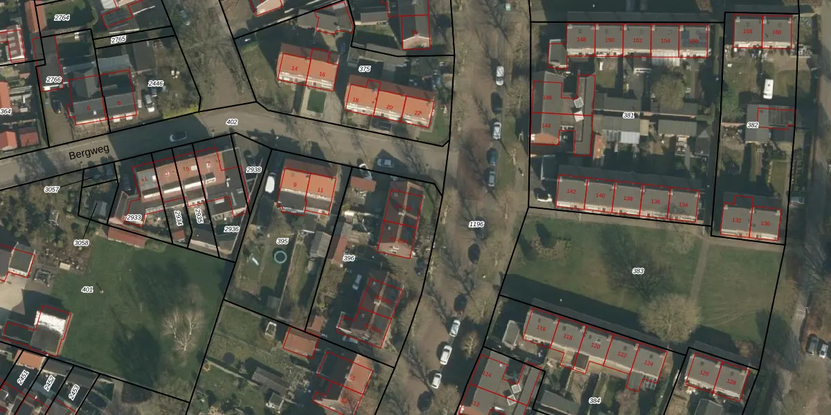 Bergweg 13-A is gelegen op kadastraal perceel WCN00I396. Deze kadastrale aanduiding is uniek en wordt gebruikt door het Kadaster om eigendomsrechten en andere zakelijke rechten vast te leggen. Het perceel maakt onderdeel uit van de kadastrale gemeente Wijchen.