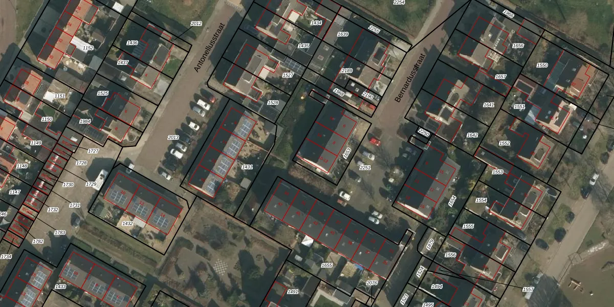 Het perceel waarop Bernardusstraat 12 staat heeft een oppervlakte van 394 m². Dit is een groot perceel. De perceeloppervlakte wordt geregistreerd door het Kadaster. Gedetailleerde informatie over de maten van dit perceel kunt u vinden in het rapport Kadastrale kaart met maatvoering van Bernardusstraat 12.