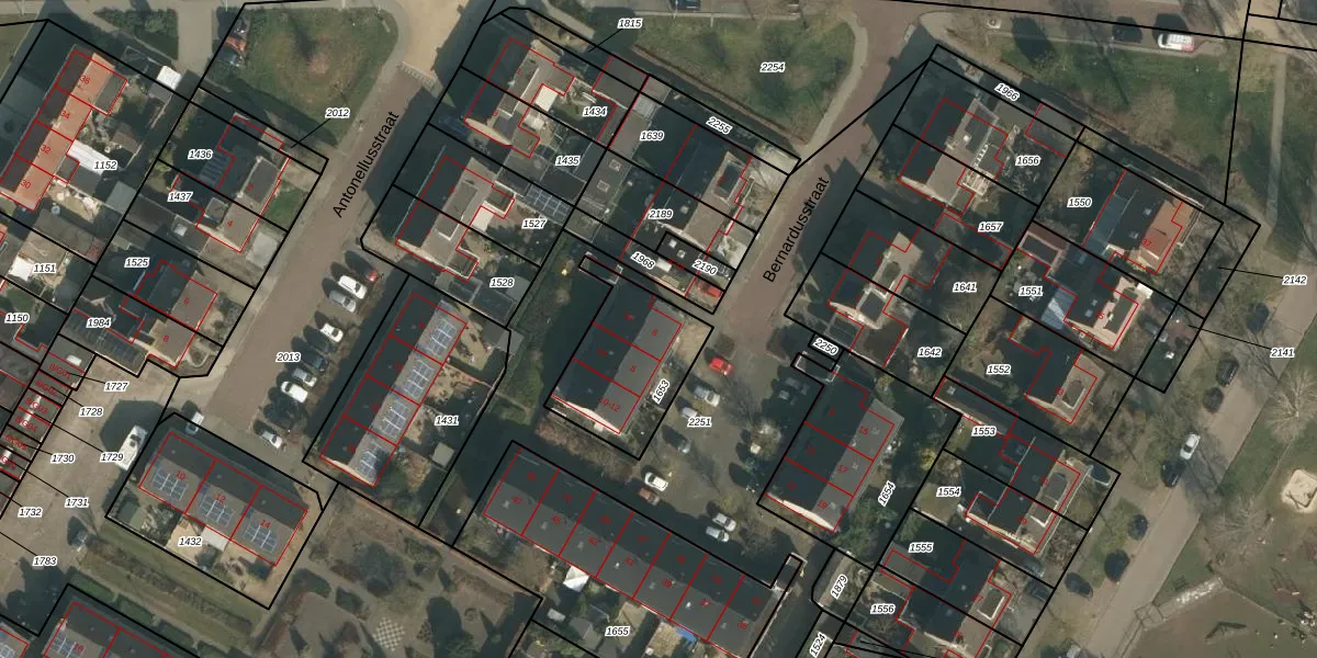 Het perceel waarop Bernardusstraat 6 staat heeft een oppervlakte van 394 m². Dit is een groot perceel. De perceeloppervlakte wordt geregistreerd door het Kadaster. Gedetailleerde informatie over de maten van dit perceel kunt u vinden in het rapport Kadastrale kaart met maatvoering van Bernardusstraat 6.